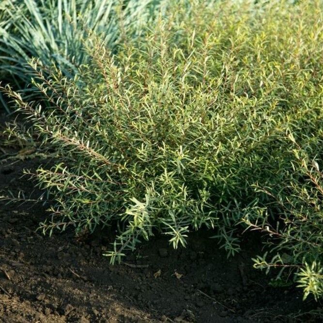 Эффектный, изящный кустарник до 1 м высотой с шаровидной, плотной кроной, многочисленными, очень тонкими побегами и мелкими сизыми, удлиненными листьями.