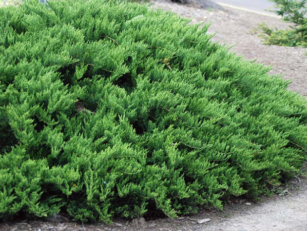 Карликовый, медленнорастущий кустарник, в возрасте 10 лет доростает до 30 см в высоту и 1,5-2 метра в диаметре. Хвоя густая,в форме мелких иголочек серо-зеленого цвета. Нетребователен к почве и влаге.