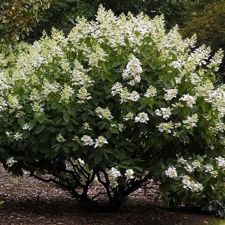 Кустарник высотой до 3 м, шириной кроны до 3 м, отличается изяществом и лёгкостью. Цветёт с июля по сентябрь, выбрасывая крупные, длиной до 30 см, широкопирамидальные белые соцветия на прямостоячих, крепких стеблях. Ажурные соцветия состоят из мелких фертильных (их большинство) и крупных стерильных четырёхлепестковых цветков, к осени цветки приобретают розовый оттенок. Листья тёмно-зелёные, глянцевые, зубчатые по краям. Сорт очень неприхотлив, зимостоек, но в молодом возрасте требуется укрытие. Растёт быстро. Отличный вариант для украшения парков и скверов. Местоположение: солнце, полутень.Почва: лёгкая, плодородная, кислая, слабокислая или нейтральная, умеренно увлажнённая.Использование: одиночные или групповые посадки, ландшафтные композиции.