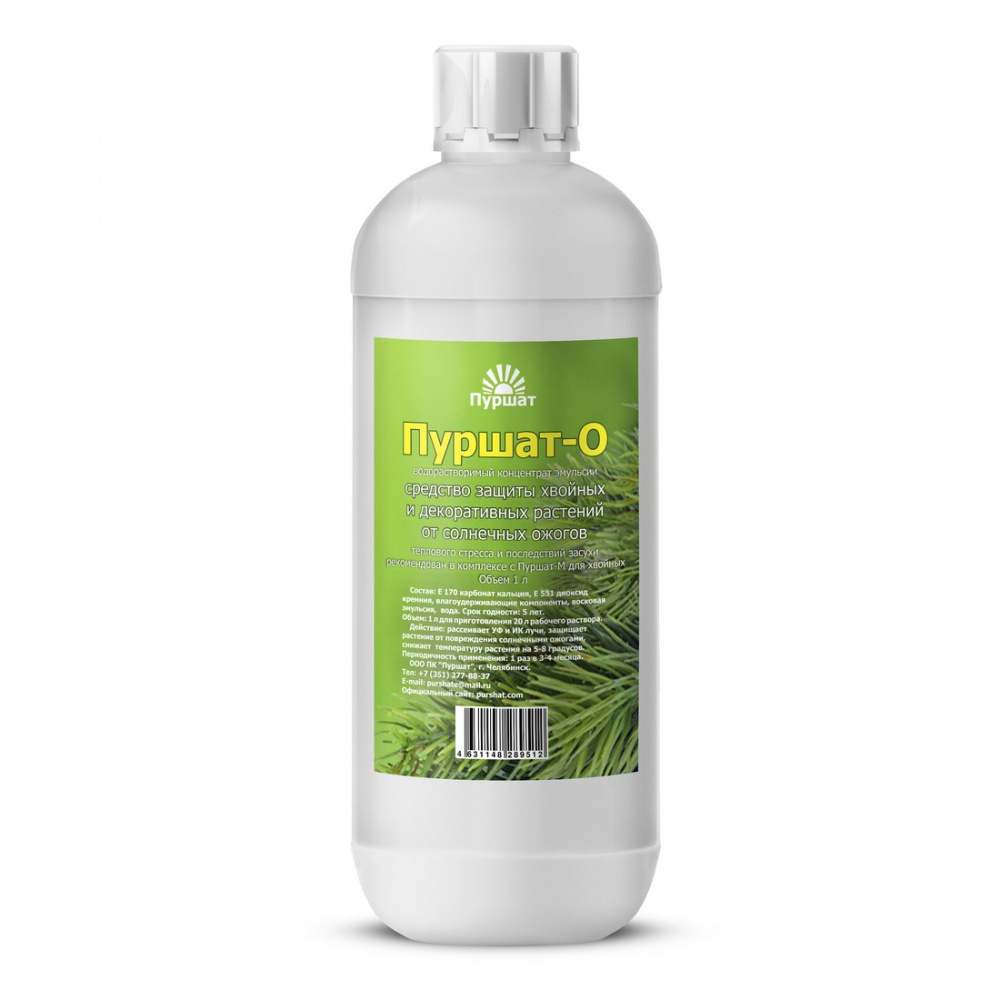 Пуршат-О – эффективное средство для защиты хвойных и декоративных растений от солнечных ожогов и засухи летом или после бесснежной зимы. Препарат позволяет сохранить максимум воды в тканях и клетках, предотвратить пересыхание хвои и почек у молодых побегов, предотвратить негативные проявления после пересадки растений.