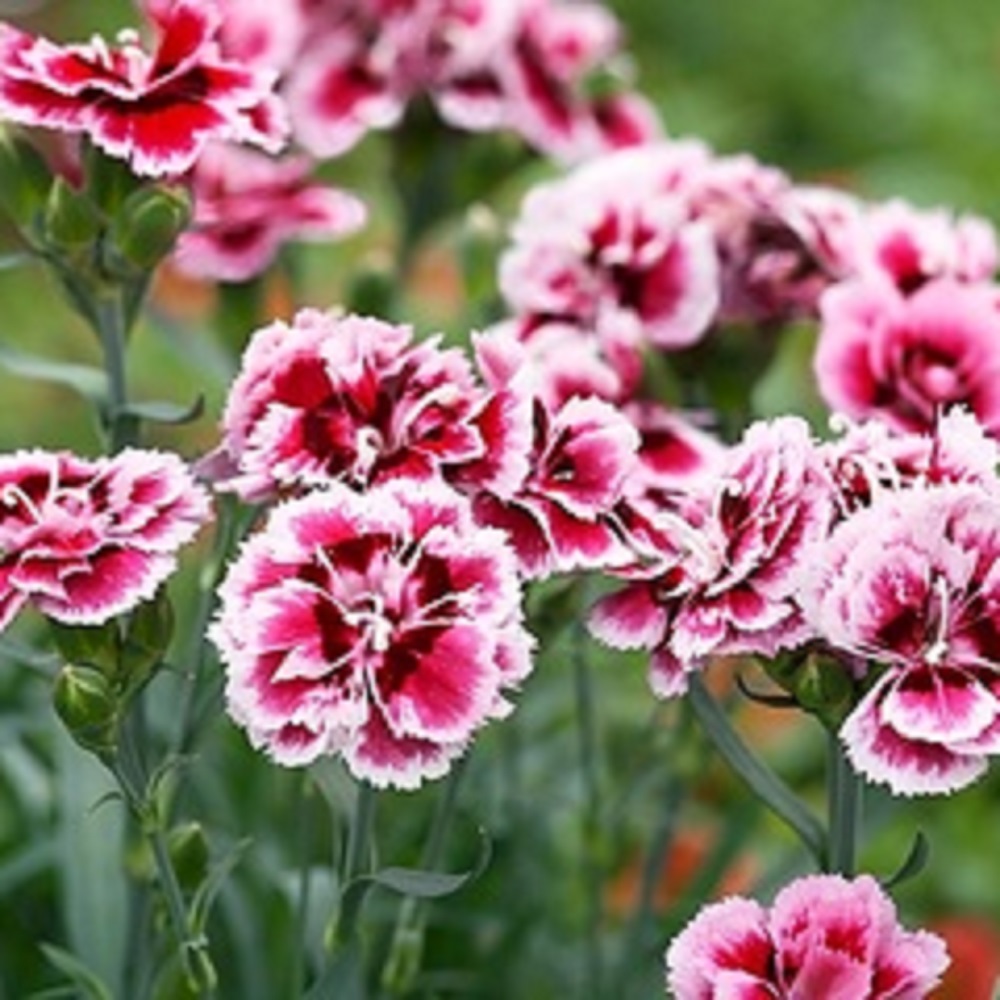 Сорт гвоздики садовой, образующий плотные подушки из узких сизоватых листьев, высотой до 25 см (с цветоносами до 40 см), цветущий яркими, часто двухцветными (например, карминно-розовыми с белым глазком) зубчатыми цветками, с сильным ароматом, любит солнце и хорошо переносит холода (до -35°C), сохраняя декоративность весь сезон