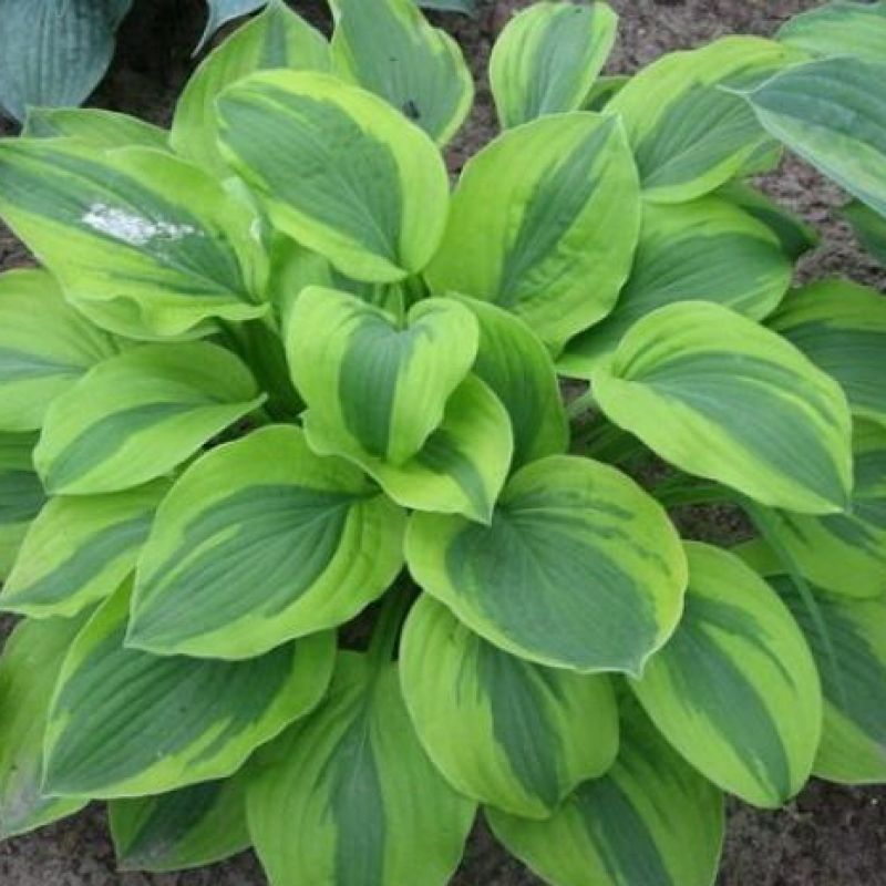 Листья темно-зеленого цвета с широкой желтой каймой. Высокая устойчивость к низким температурам. Цветение ближе к середине лета крупными колокольчатой формы цветами светло-лавандового цвета. Цветки образуются на достаточно длинном цветоносе. Высота см : 40-50. Время цветения : Июль / АвгустОкраска цветка : светло-лавандовая