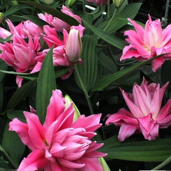 Лилия восточная "Kadango" (Каданго)- махровая, ярко- розовая лилия Каданго относится к группе Восточные гибриды. Цветы ароматные диаметром 21 см, высота 120 см. Всем восточным лилиям необходимы солнце или полутень, сухая хорошо дренированная почва, регулярные подкормки комплексными удобрениями. Зимуют восточные лилии в сухой почве с укрытием.