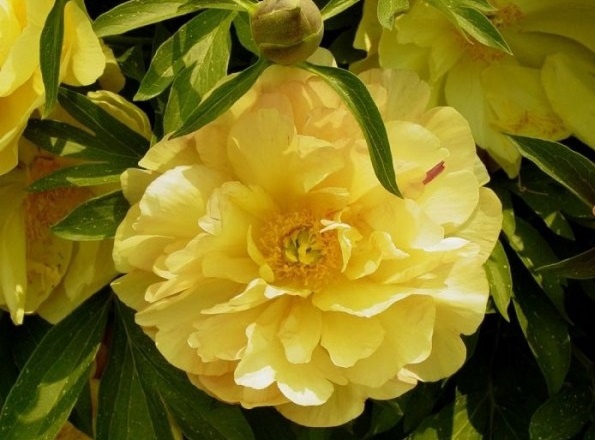 Ито-гибрид. Цветок диаметром 12 см, от простого (16 лепестков) до почти махрового (40 лепестков). При открытии цветки имеют светло-розовые пятна в основании лепестков, которые затем исчезают и цветки приобретают чистый, ясный жёлтый цвет. Отсутствие пятен необычно для этой группы пионов. Внешние лепестки очень широкие (до 7,5 см). Тычинки образуют плотное кольцо. Они жёлтые, почти того же цвета, что и лепестки и кажутся практически невидимыми. На таком фоне красные рыльца пестиков становятся очень заметны. Пестиков 3-5, они гладкие и бледно-зелёные. На цветоносах по 3 бутона. Цветки расположены чуть выше листвы. Высота 75 см. Цветение при наличии боковых бутонов продолжается три недели, от раннего до средне-позднего сроков.