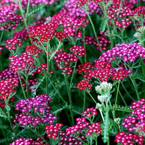Тысячелистник обыкновенный 'Summerwine' - неприхотливое многолетнее травянистое растение,цветки тёмно-красные с белым центром, в плоских соцветиях, при отцветании розовеют. Листва тёмно-зелёная папоротниковидная. Цветы хороши для срезки и сухих букетов. Растение не терпит излишней сырости.