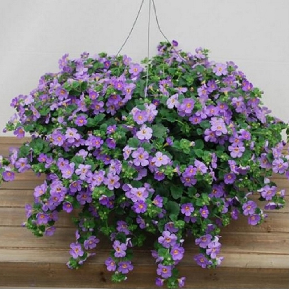 Популярный ампельный гибрид, образующий каскады нежно-голубых цветов длиной до 60-70 см. Отличается непрерывным цветением с июня по октябрь, мелкой зеленой листвой и неприхотливостью. Идеальна для подвесных кашпо, балконных ящиков и как почвопокровник, часто используется в композициях с петуниями.