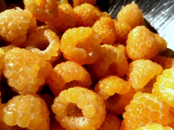 Средний срок созревания. Ягоды очень крупные, размером с грецкий орех. Плодовые веточки прочные, на каждой созревает порядка двадцати ягод, иногда и больше. Цвет золотисто-желтый, мякоть нежная, ароматная, очень сладкая. Транспортабельность хорошая. Сорт самоплодный, зимостойкий, засухоустойчивый. Слабо повреждается болезнями и вредителями. Кусты слабо раскидистые, достигают в высоту 2,5 м, стебли мощные.Если вам не по вкусу кисловатый привкус красной малины, то желтая малина порадует вас своей приятной сладостью, а этот сорт желтой малины порадует крупностью ягод.