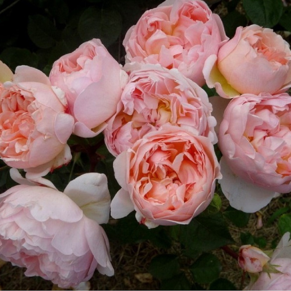 Цветки перламутрово-персиковые, оттенки меняются в течении сезона от абрикосового до нежно-розово-персикового. Цветки очень крупные пионовидные распускаются в плоские розетки. Цветение обильное -одиночное и кистями, повторное. Куст декоративный, аккуратный, прямой, ветвистый, с красивыми дуговидными побегами, в высоту и ширину достигает около 1 метра.