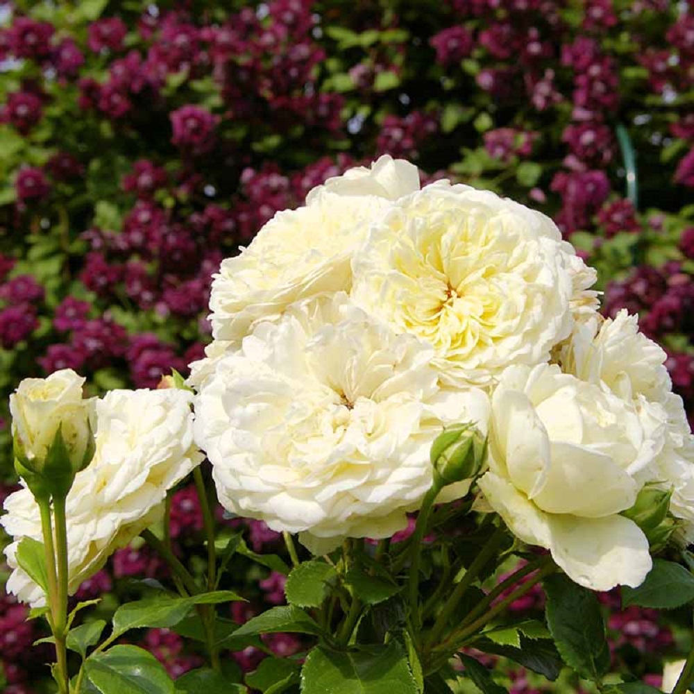 Мощный, здоровый английский шраб с чисто-белыми, густомахровыми цветками идеальной розеточной формы, которые распускаются из желтоватых бутонов. Цветки имеют легкий яблочный аромат, собраны в соцветия и почти не портятся от дождя. Куст прямостоячий, высотой до 125 см, почти без шипов, устойчив к болезням и морозостойкий, подходит для клумб, миксбордеров, штамба и срезки, цветет непрерывно.