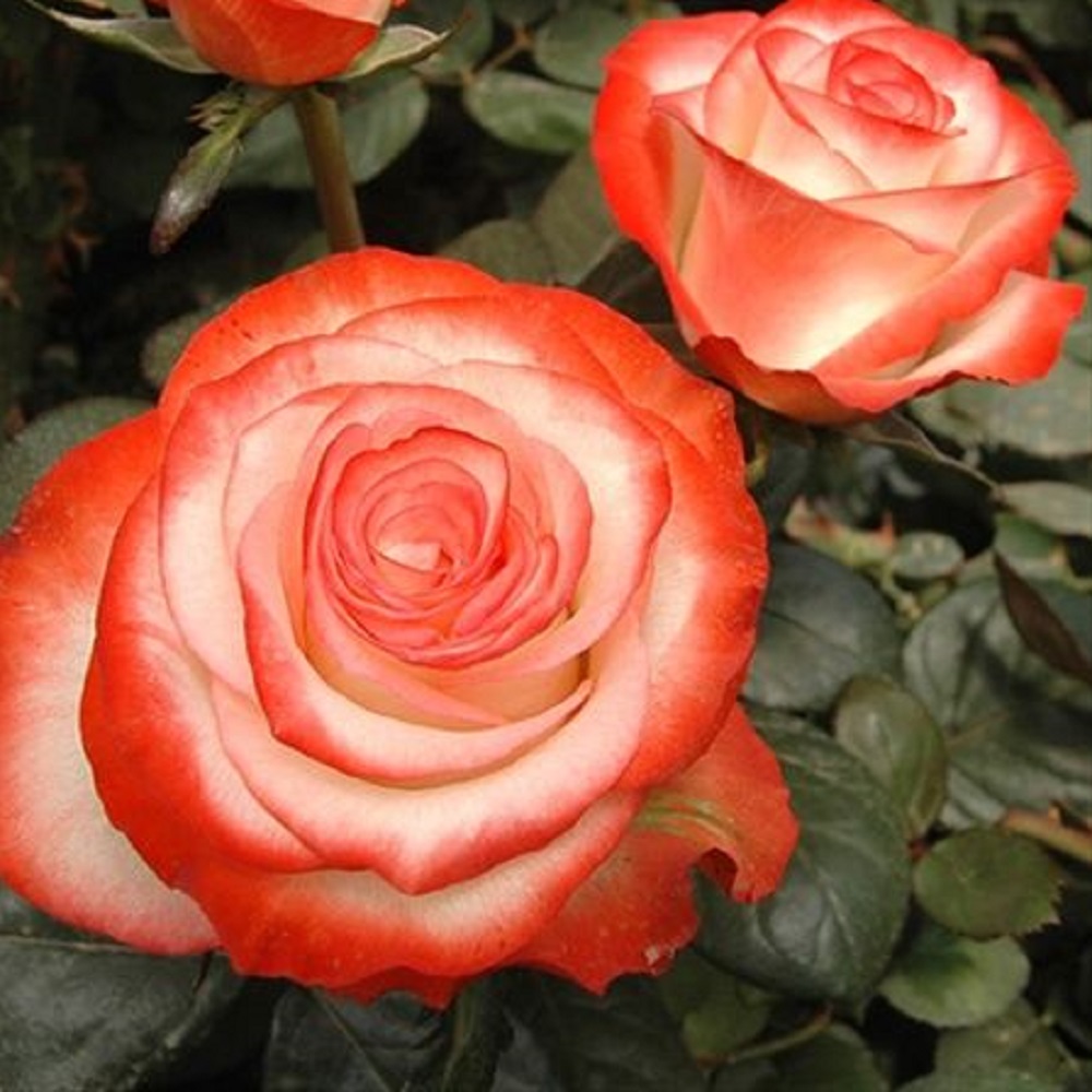 Название розы Фарфала (Farfalla) переводится с итальянского, как «бабочки». Такое оригинальное название эта эквадорская роза получила благодаря своей необычной двухцветной окраске, напоминающей крылья бабочки. Цвет лепестков розы-бабочки меняется от кремового до огненно-красно-коричневого ближе к краям бутонов. Изящные лепестки при раскрытии слегка отгибаются в стороны, продолжая держать форму бокала. Аромат завораживает с первого вдоха, ведь объединяет сладость дамасской розы, с терпкостью меда, и кислинкой экзотических фруктов. Стебли прочные, листья крупные, темно-зеленые. Этот сорт хорошо переносит зиму под небольшим укрытием, а также идеально подходит для срезки в вазы. Цветение обильное в течение всего сезона. Морозостойкость высокая, устойчивость к болезням средняя,